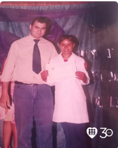 María y Víctor Gérez nacieron en medio del campo chaqueño, a 80 km de nuestra escuela de Taco Pozo. Crecieron en una familia de once hermanos, en una vivienda sencilla, lejos de la electricidad, del ruido y de los lujos. Conocieron de cerca el trabajo duro, el frío de un invierno a pura leña y el calor agobiante del verano. Conocieron la gratitud por los frutos de la cosecha y del cuidado de sus animales. Carne, huevos, leche, queso, dulces… “Todo lo que podíamos hacer, lo hacíamos. Nunca nos faltó nada y tuve una linda infancia”, recuerda María.