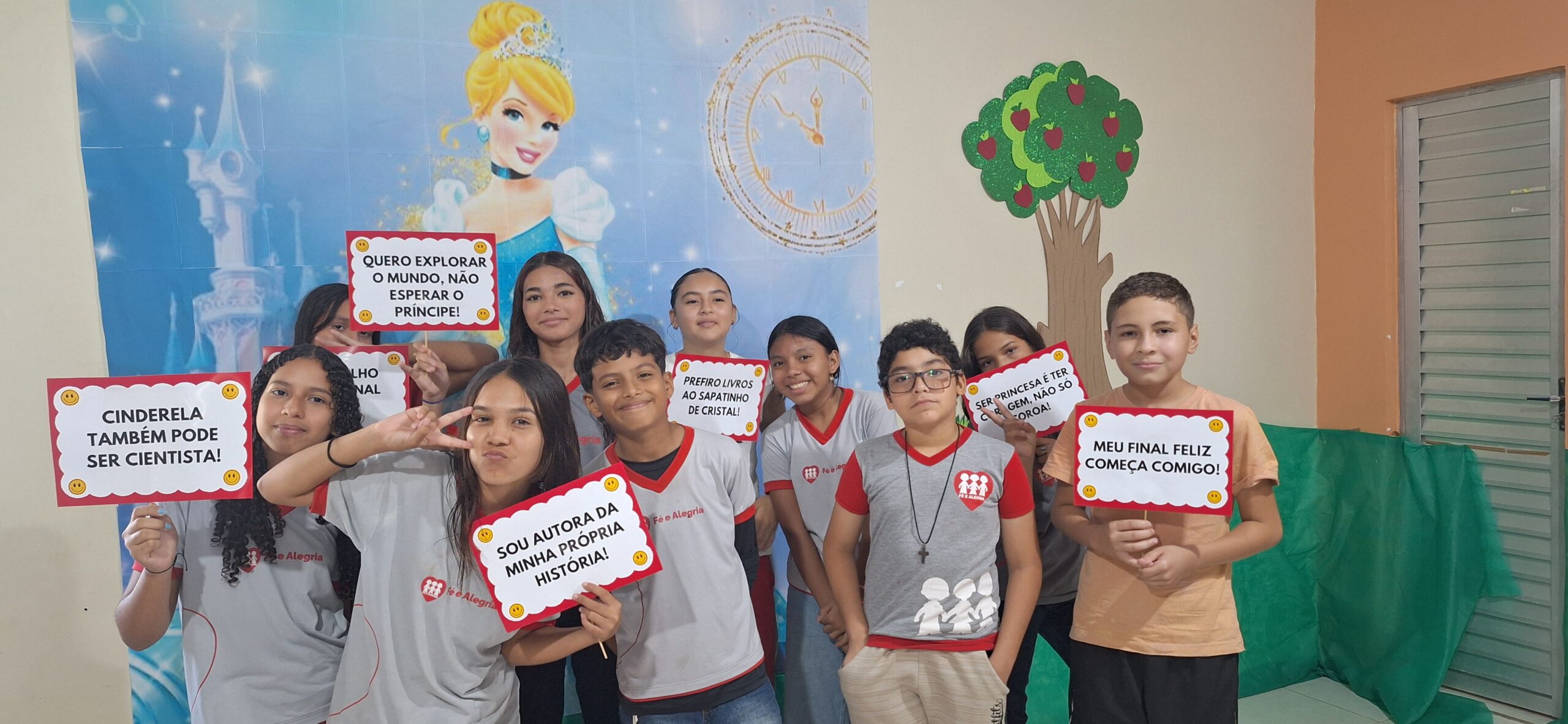 A semana teve início com uma comparação entre a versão tradicional da história da Cinderela e a obra A Revolução da Cinderela. A partir disso, refletiram sobre os papéis impostos às mulheres nas narrativas clássicas. Perguntas como “Cinderela precisava do príncipe para ser feliz?” e “Se ela fosse a protagonista da própria história, o que poderia ter sido?” estimulando o pensamento crítico.