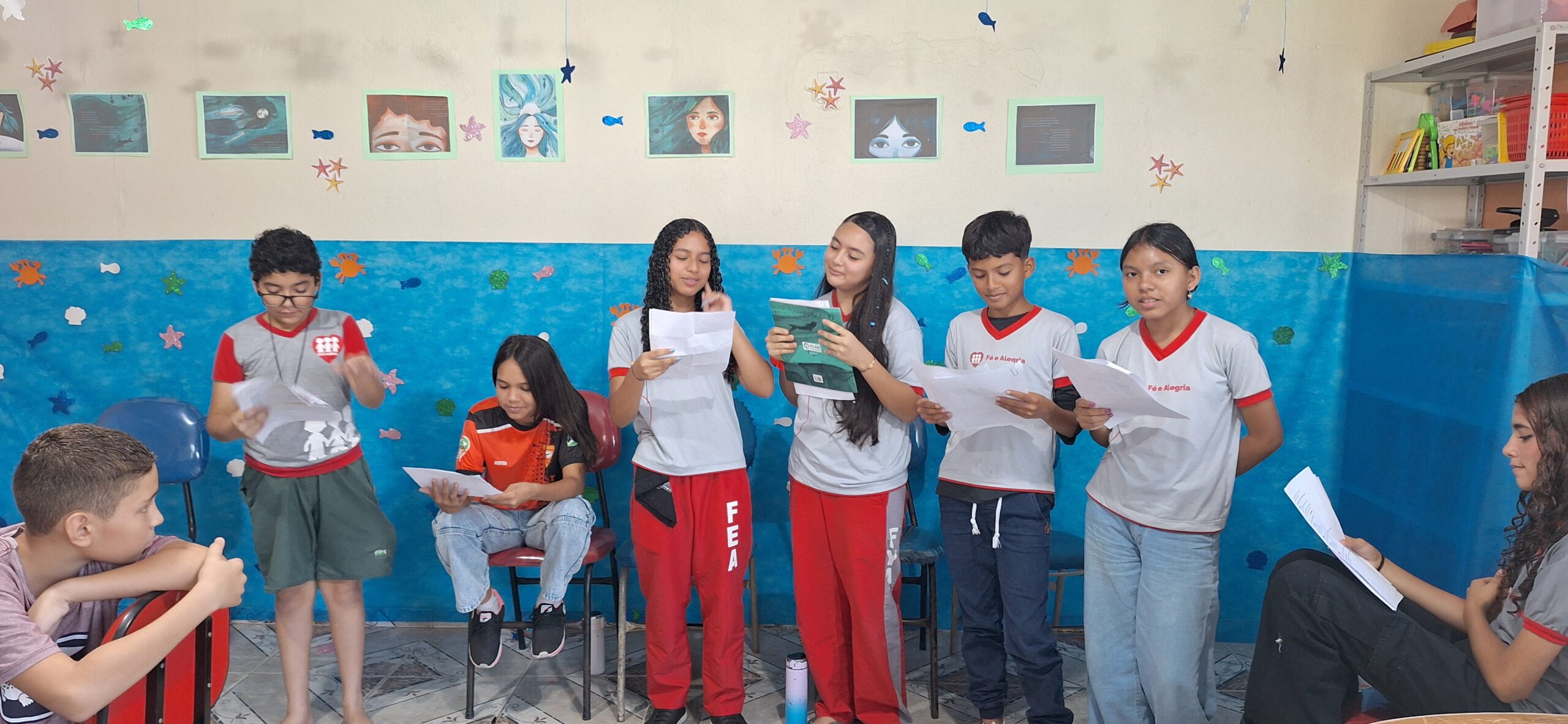 No Grupo 3, o foco foi o livro A Revolução da Ariel. A preparação incluiu a leitura da história ficcional Na escola com Joana e Márcio, que aborda estereótipos de gênero no ambiente escolar. Os educandos compartilharam vivências reais, como a exclusão de meninas em algumas atividades, além de refletirem sobre tarefas domésticas, profissões e papéis sociais. “Foi transformador ver as percepções dos educandos sobre empoderamento feminino ganhando forma em arte, cartas e teatro mostra como a literatura pode moldar uma geração mais consciente e respeitosa”, destacou o educador social Lucas Maciel.