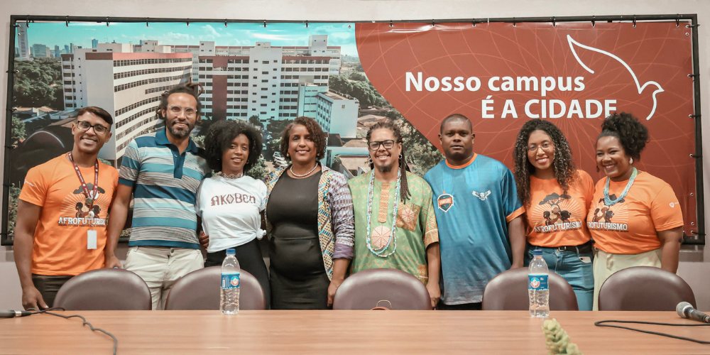 O ponto alto da programação foi a roda de diálogo “Afrofuturismo: criando futuros possíveis para juventudes negras”, realizada no dia 13 de novembro, no auditório G2 da Unicap. O encontro reuniu Patrícia Oliveira, advogada e membra da Comissão de Igualdade Racial da OAB/PE; o Coletivo Akoben, formado por pedagogas com foco em educação decolonial e quilombista; Tiago Rocha, sociólogo e educador social da Secretaria de Desenvolvimento Social e Direitos Humanos do Recife; Anderson Kleyton, doutor honoris causa, olossain do Ilê Axé e militante do Movimento Negro Unificado (MNU); Fagner Cleiton, grafiteiro, assistente social e educador social; e Guilherme Alves, doutor em Ciência da Informação, professor e consultor em inovação. O debate estimulou reflexões sobre o papel da juventude negra na construção de novos imaginários e possibilidades de futuro, unindo pensamento crítico e inspiração.