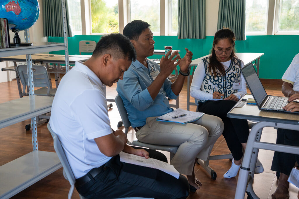 Entre los principales ponentes de los hitos de FyA se encontraban los profesores camboyanos pioneros del Programa del Centro de Aprendizaje Comunitario (CLC) de FyA para los niños de la escuela primaria de la aldea de Phnom Bak. El Sr. Huon Han, profesor de inglés del CLC, actuó como maestro de ceremonias, mientras que la Sra. Dam Lada (profesora de alfabetización y creatividad jemer) y el Sr. San Longkot (profesor de informática) fueron los principales ponentes y moderadores del intercambio en pequeños grupos. La Sra. Phlam Rany, que hasta ahora ha sido la asistente de cuatro directores jesuitas de FyA Camboya, se encargó de la logística y ayudó a presentar las conclusiones principales del diagnóstico educativo, junto con el P. Mark López, SJ (Director Nacional) y Pilar López-Dafonte (Responsable para la internacionalización de FIFyA en Asia).
