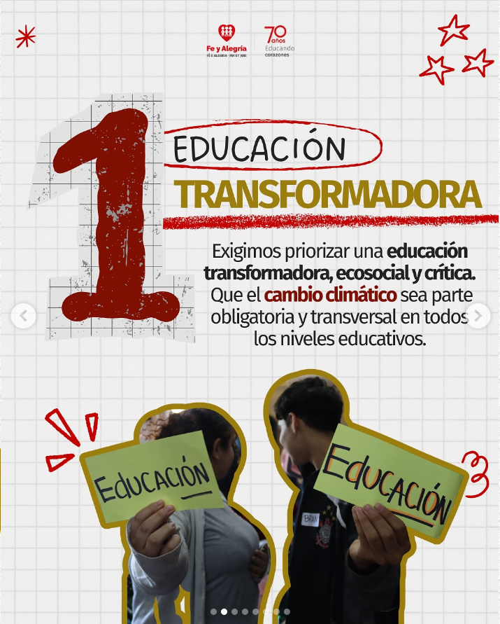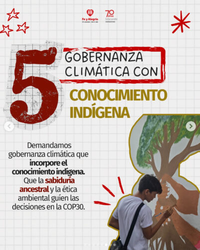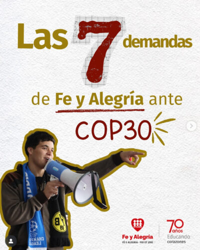 Como parte de su participación, Fe y Alegría llevará siete demandas concretas a los Estados y líderes reunidos en Belém: