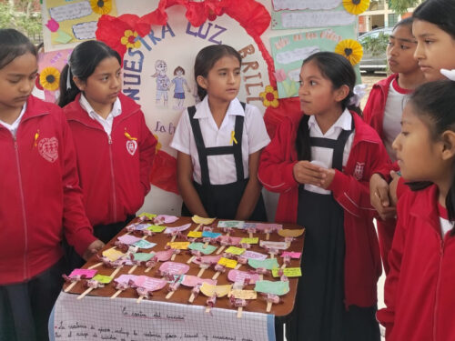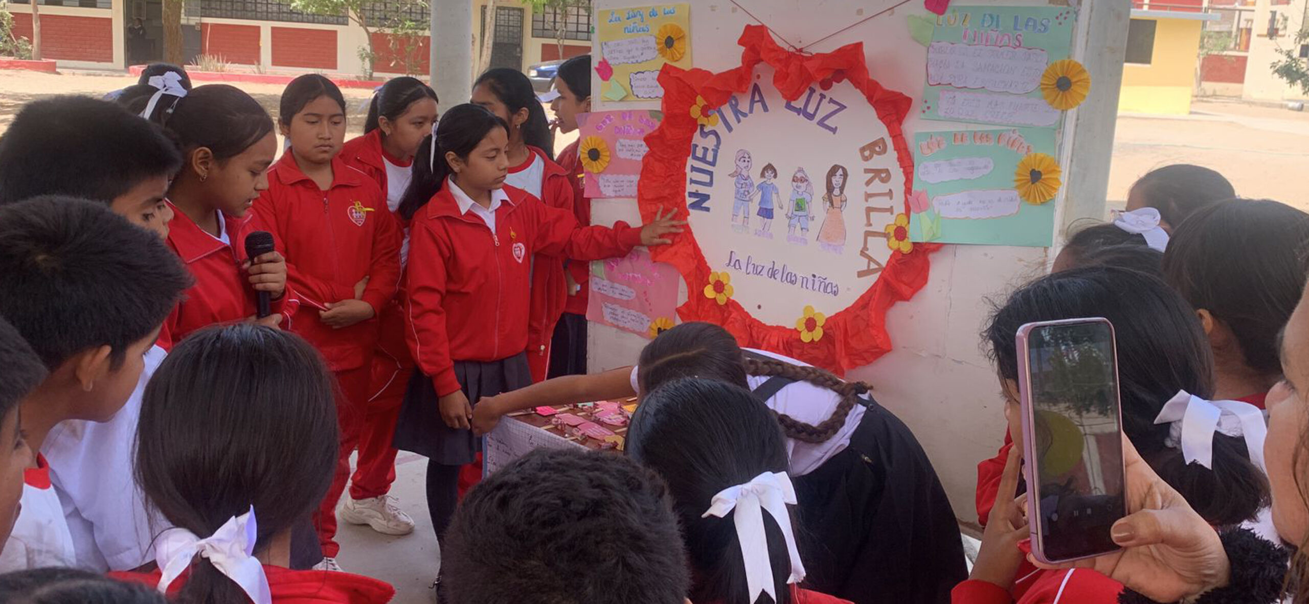Las estudiantes de cuarto y quinto de primaria, acompañadas por el equipo de Género, realizaron un pequeño mural con frases motivadoras y alzaron su voz para promover la auto-valoración y el desarrollo del liderazgo en todas las niñas. Durante la actividad, identificaron factores de riesgo como la desesperanza, la soledad y la falta de apoyo familiar, y mencionaron que en ocasiones sus compañeras sienten una limitada red de apoyo debido a las largas jornadas laborales de sus padres.