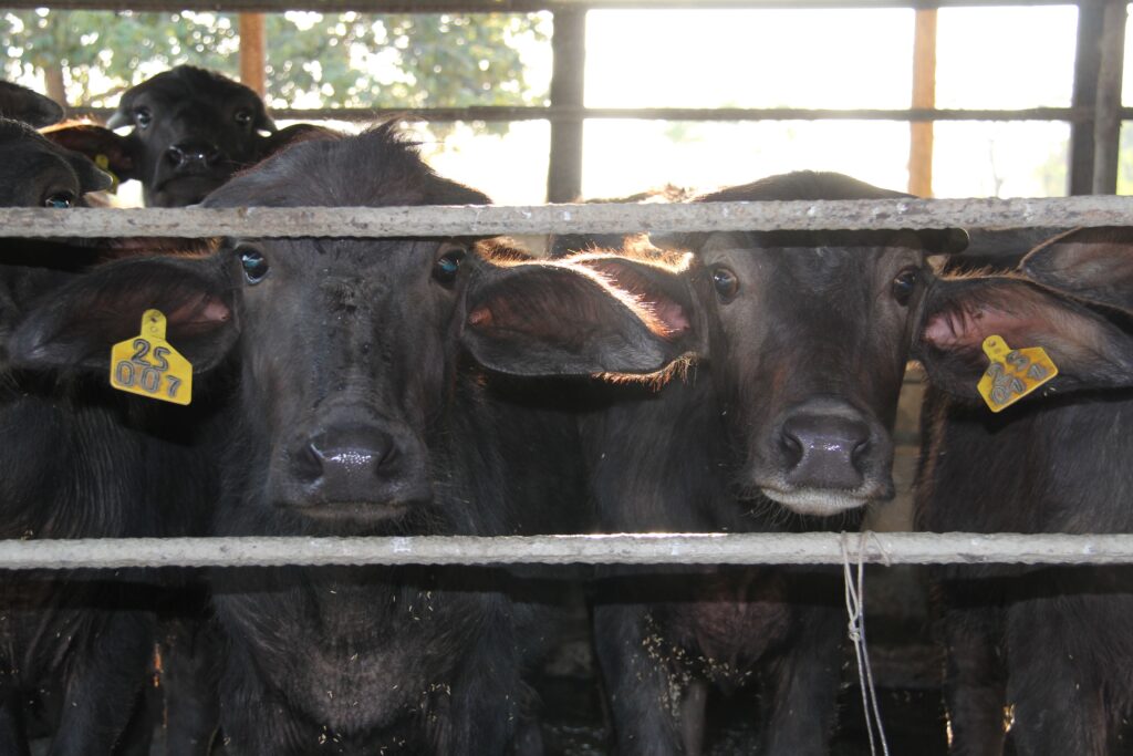 Horas después de ver el proceso de ordeño recorrimos nuestra finca, la cual cuenta con 336 hectáreas divididas en tres áreas: la vaquería, el huerto y las instalaciones del instituto. En la finca existen 300 animales que se distribuyen en 59 vacunos, 141 bufalinos, 11 vacas, 38 búfalas, 14 cerdos, 4 caballos de trabajo y 2 yeguas. Todos los días producen hasta 215 litros de leche que luego comercializan.