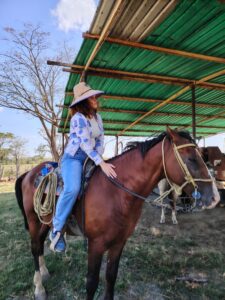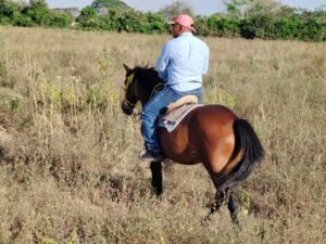 En este recorrido conocí a Luis Herrera y Estrella Astroza, con quienes monté a caballo. Ambos me explicaron cómo montarse y cómo manejarlo mientras recorríamos el campo de Guanarito. Mi caballo se llamaba Caramelo, alto y bello. Luis iba con Josefina, una yegua que estaba preñada, con un galope muy elegante, y Estrella con El Bayo, un poco receloso durante el camino con Caramelo. Todo iba bien hasta que, de regreso, con mis pies le mandé una señal a Caramelo de ir más rápido, tarde para darme cuenta de que no tenía la suficiente experiencia para cabalgar a esa velocidad.