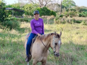 Pero rápidamente Luis, que cabalgaba a mi lado, me ayudó a recuperar el control. Caramelo se portó como un galán y sobre todo fue obediente, ya sabía el camino. Como dicen por ahí, «le solté la rienda». Era mi primera vez montando a caballo y lo hice en el llano mismo, escuchando a Estrella y Luis sobre el campo, su forma de organizarse, la producción y el ordeño. Una maravilla de conversación.