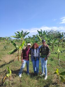 En el huerto hay 3.900 plantas de plátano, produciéndose un racimo por planta de entre 13 a 14 kilogramos, y 500 plantas de topocho que cosechan 250 kg cada 45 días. También hay pimentón, parchita, ají y cacao. Todo lo recorrí profundamente emocionada, recuerdo que solo paraba para hidratarme. También tienen teca, caoba, saqui-saqui, pardillo negro, uña de gato y apamates con fines de materia prima para la carpintería.